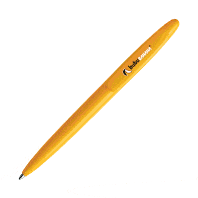 Twist action ballpen with large, modern clip. Domed finish to clip. Prices based on polished finish but also available in matt and soft touch finish. Can be fitted with 2 colour clip at extra cost. Available in transparent, white, black, yellow, orange, red, blue. Mix and match facility available.