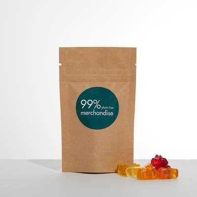 Brightly Coloured Haribo Bears in Branded, Biodegradeable Kraft Pouch. Large 50g Fill with Full Colour Digital Label or Direct Pad Print to Create an Ethical & Fun Giveaway. Minimum Quantity: 50.