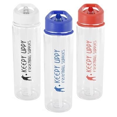 Clear Clear Transparent’straw & Folding Down Sip Mouth Piece, Blue Lid, Decorative Grip Band & Secure Screw Top Lid. Minimum Quantity: 25.