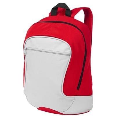 Backpack Rucksack with Large Main Compartment with Zip. Front Pocket with Zip & Slash Pocket Inside. Adjustable Padded Shoulder Straps & Reinforced Top Carry Handle. 600d Polyester. Available in black, blue, red, green, blue, navy. Minimum Quantity: 50.