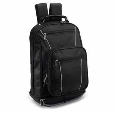 13 inch laptop. 600d polyester. Multiple front zip pockets. Available in black.