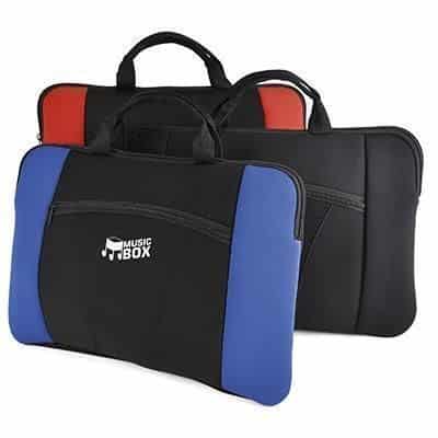 Handles to fit 15 inch laptop. Available in black, blue and red. Made from Neoprene.