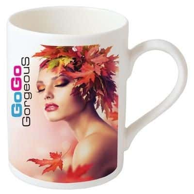 This simple yet’stunning straight’sided mug with thinly curved handle allows for a dye sublimation full coluor print, 320ml Capacity.