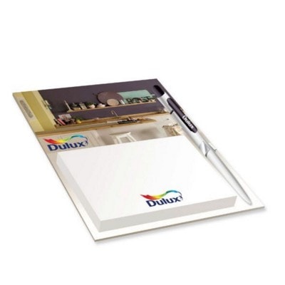 A7 Stick Up Not’s with 100 x Sheet & Ball Pen Pen. Fixed to 2mm Backing. Gloss or Matt Laminate Finish. Minimum Quantity: 250.