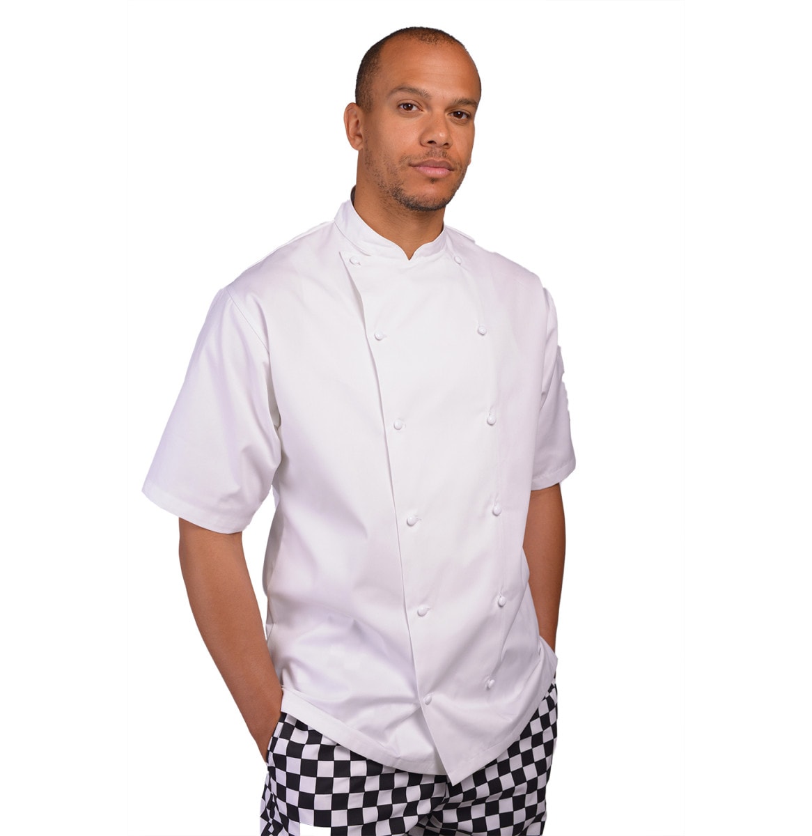 - Polycotton short’sleeve chef jacket with white capped press studs