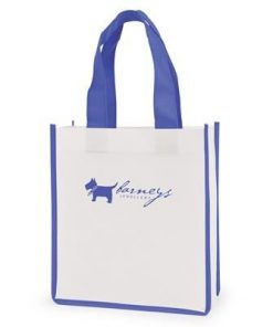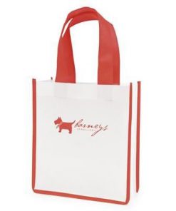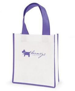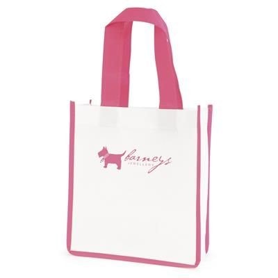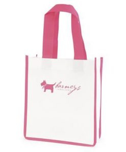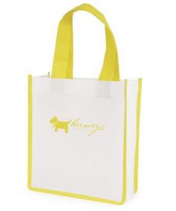 Recyclable 80gsm Non Woven Pp Mini Shopper with Gusset & Amber Handles & Matching Edge Trim. Minimum Quantity: 25.