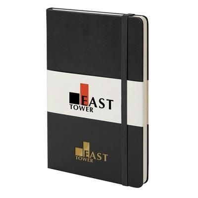 HARD COVER LARGE NOTEBOOK. Contains 240 Pages of Ivory Ruled Paper. Hard backed Cover With Rounded Corners, Internal Pocket To Rear and Elasticated Closure. minimum Quantity: 48.