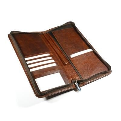 Full Hide Ashbourne Multi-pocketed Zip Travel Wallet. Minimum Quantity: 25.