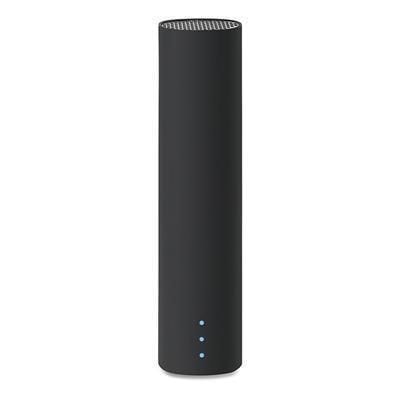 Power Tube powerbank. Rubber finish. Also has a speaker and phone stand. 3500 MAH capacity. Matt black finish.