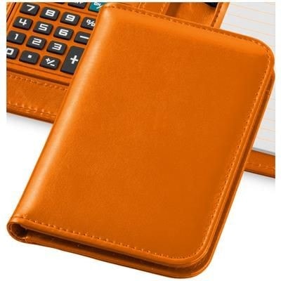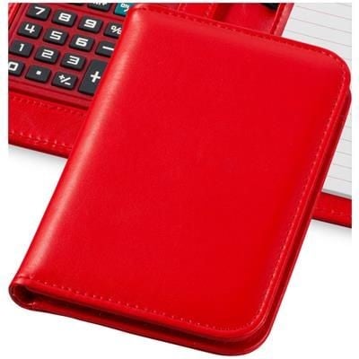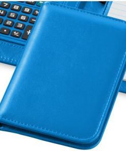 Note Book with 8 Digit Calculator & A6 Reference 20 x Sheet White, Lined Note Pad 70 G-m & Pen-loop. Battery Included & Inserted. PU. Minimum Quantity: 50.