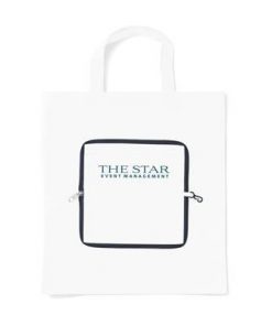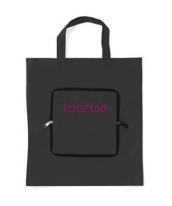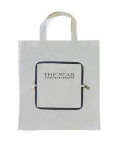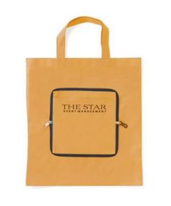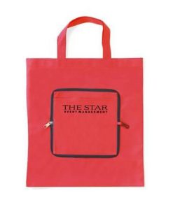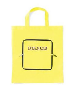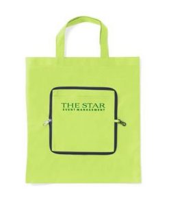 Folding, Non Woven 80g-m² Shopper Tote Bag with Compartment. Handy Compact Pouch with Zipper & Carabiner. Measures Unfolded 37x40cm. Minimum Quantity: 250.