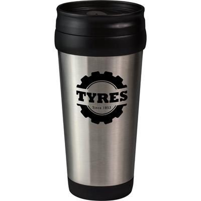 Thermal Insulated Stainless Steel Metal Travel Mug. Capacity:14oz. Features Screw Top Lid. Minimum Quantity: 50.